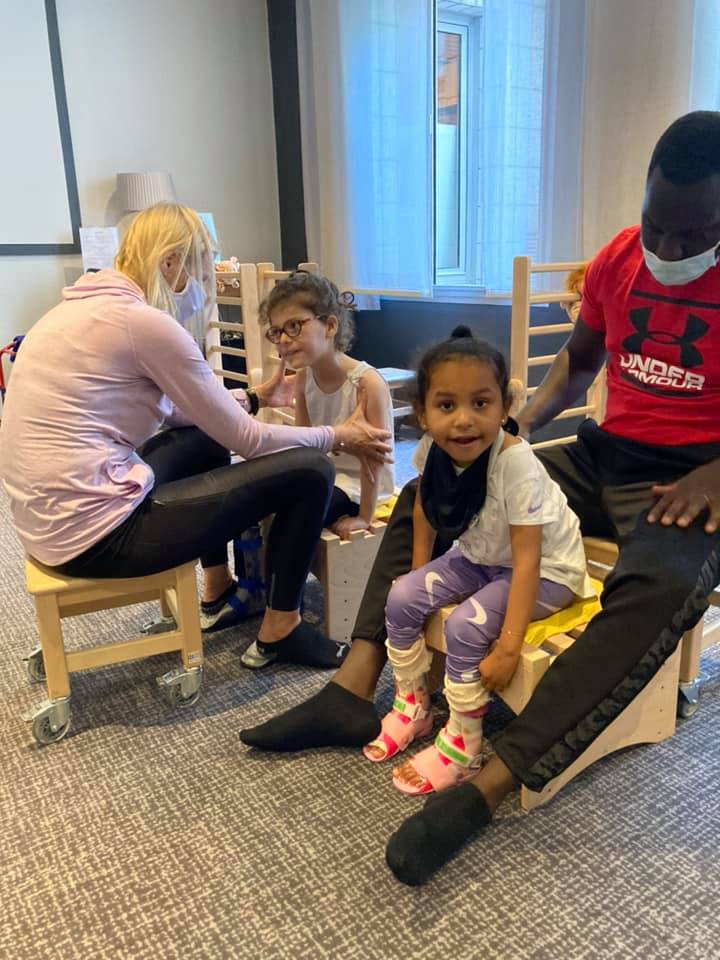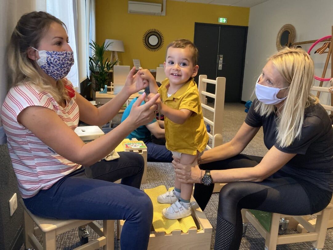 Nous organisons régulièrement des stages d’éducation conductive de 2 à 3 semaines à Paris, pour des enfants à partir de 1 an. Les enfants sont répartis en petits groupes en fonction de leur âge et de leur niveau de développement, et doivent être accompagnés d’un adulte qui les aident à réaliser les exercices.