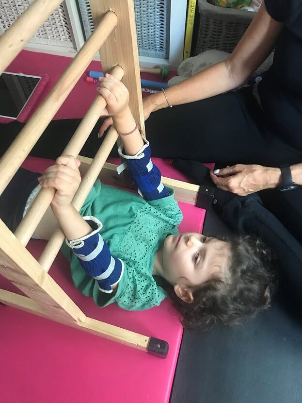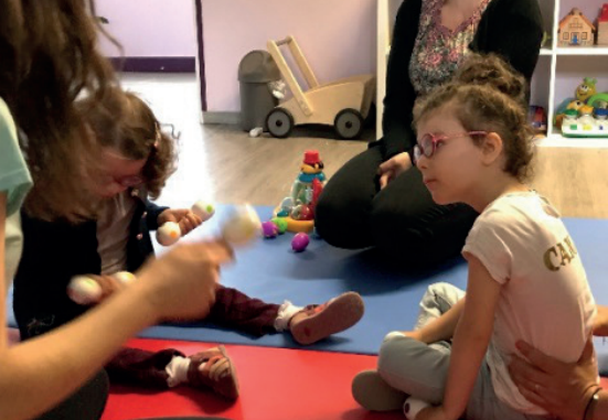 - Communication : au centre de la méthode Petö car l’enfant est acteur des exercices et il est sollicité tout au long des ateliers pour répondre aux consignes de la conductrice. L’enfant est aussi très souvent invité à s’exprimer en fonction de ses possibilités lors des ateliers.